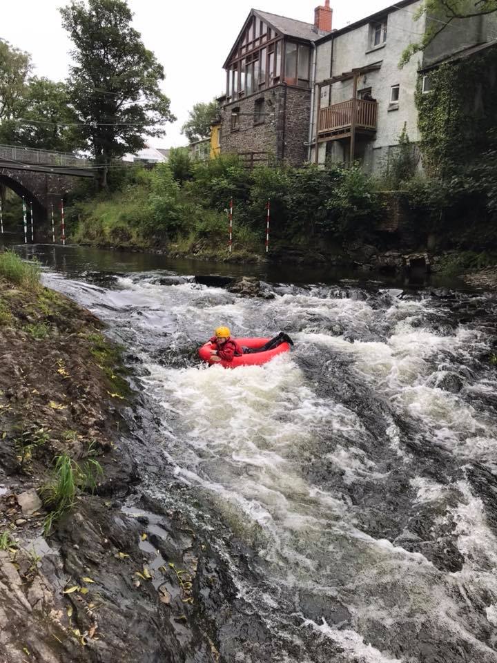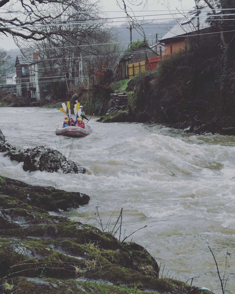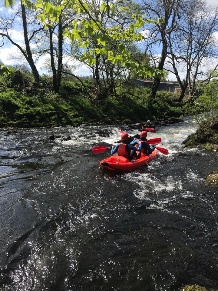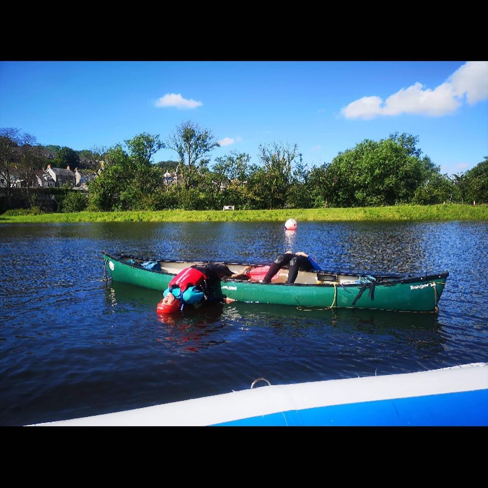 Beth rydyn ni’n ei wneud, wel rydyn ni’n anelu at fod y tu allan gan ddefnyddio naill ai’r Afon neu’r Llyn yma ar y safle ar gyfer Caiacio, Rafftio, Arking, nofio ar yr afon neu os oes angen, rydyn ni’n gallu defnyddio’r pwll nofio lleol ar gyfer Caiacio, Canŵio neu ddefnyddio’r ‘ -Gosod safle wal.